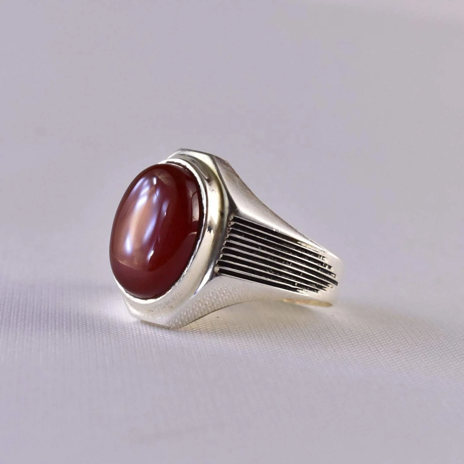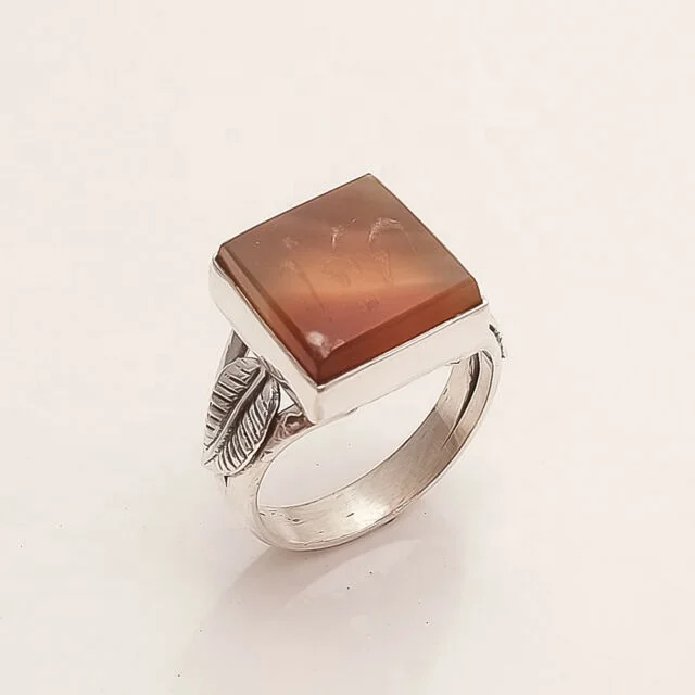 Wholesale Natural Gemstone Engraving Design Vintage Oxidized 925 Sterling Silver Yemeni Aqeeq Ring Men